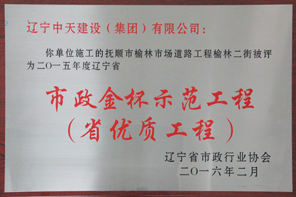 企業先后榮獲“全國優秀施工企業”、 “中國AAA級信用企業”、“全國保障性安居工程建設勞動競賽先進單位”、“遼寧省最受尊敬企業”、“遼寧省優秀建筑業企業”、“遼寧省工程建設質量管理優秀企業”、 “遼寧省守合同、重信用企業”、遼寧省“AAA級信用企業”、 “撫順市安全生產先進單位、紅旗單位”、“撫順市安康杯競賽先進集體”等多項殊榮。
